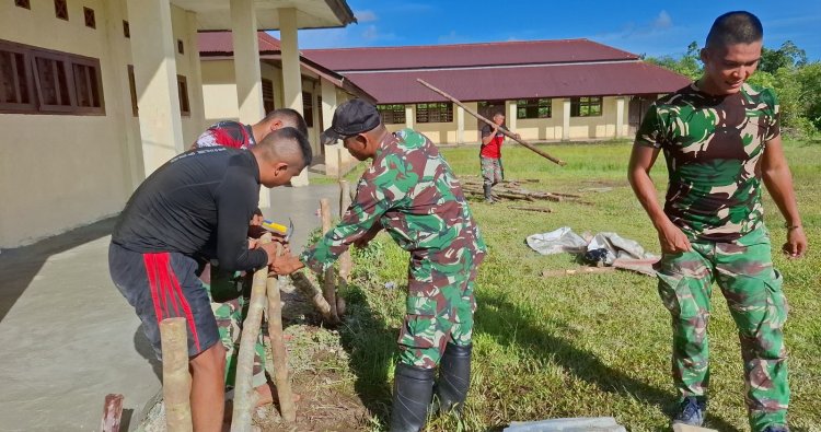 BOVEN DIGOEL - Komitmen TNI dalam mendukung pembangunan sumber daya manusia di wilayah terpencil kembali diwujudkan melalui aksi nyata. Satgas Swasembada Yonif 126/Kalacakti Koops TNI Habema melaksanakan renovasi fasilitas pendidikan di SMP Negeri 2 Mindiptana, Kampung Osso, Kabupaten Boven Digoel, Papua Selatan, Senin (20/4/2026).